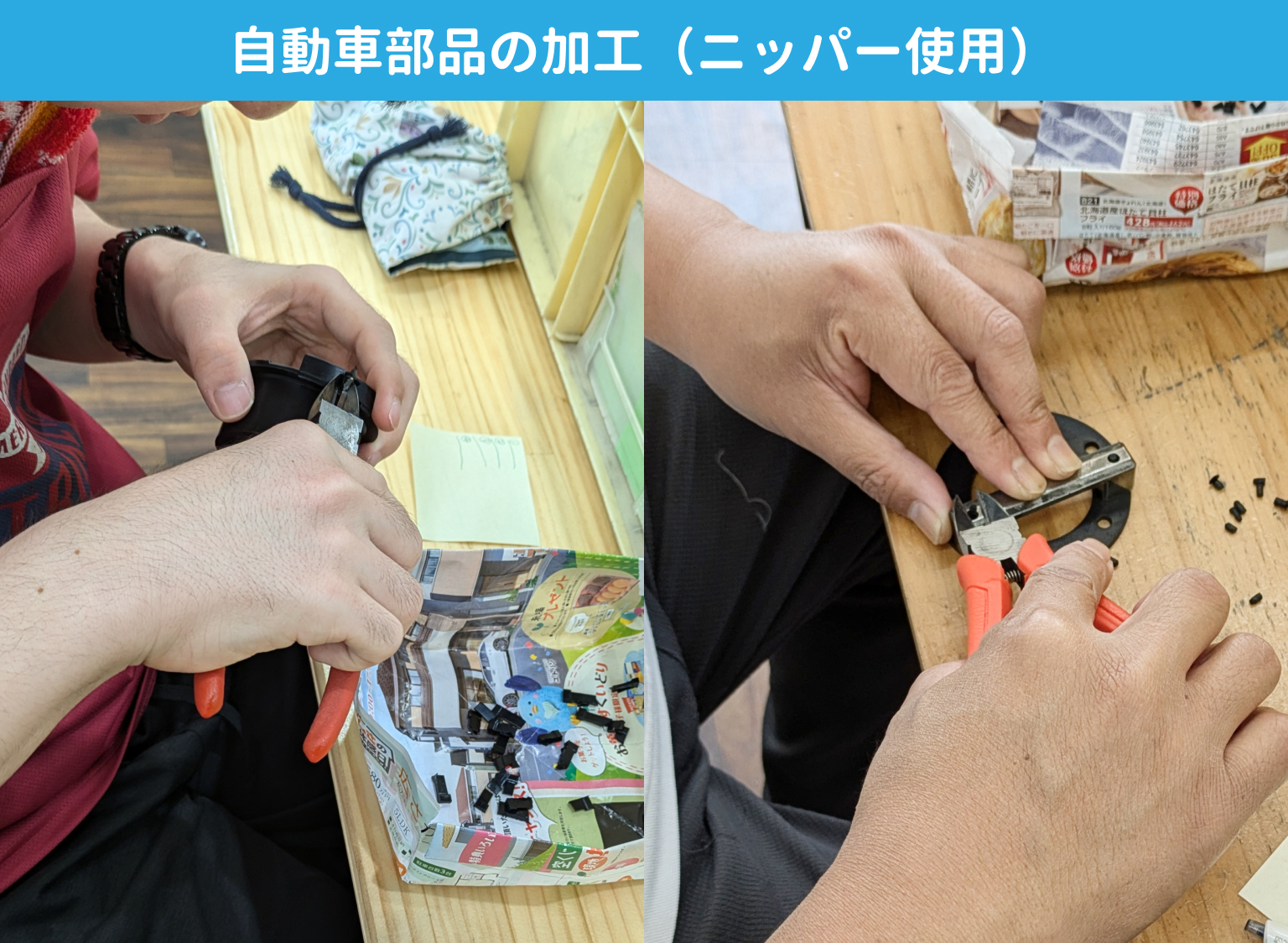 ・自動車部品の加工(バリ取りやシリコン液の塗布など) ・内職作業(リボン糊付け、多種作業) ・シール貼り作業 ・自社製品作成・ラッピング ・ヤフオク・メルカリ出品 ・SNS更新 ・TikTok撮影